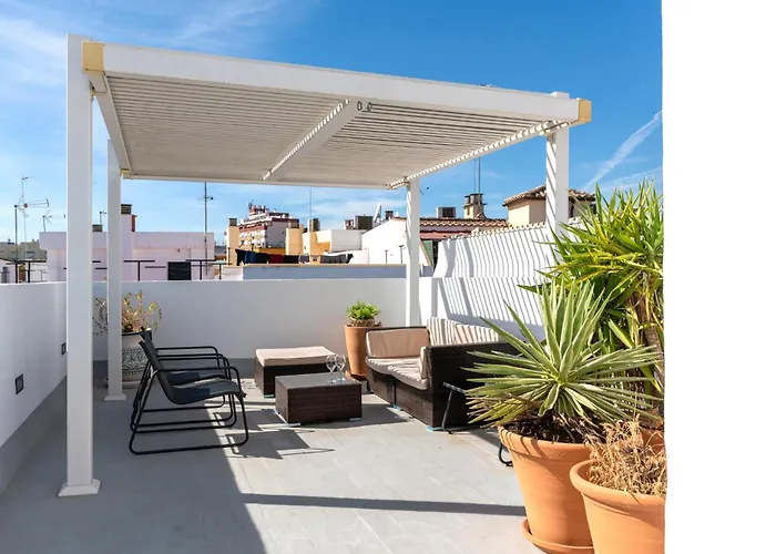 The 65 m² Veoapartment Alfareria Terraza Seville apartment is approximately a 20-minute walk from the majestic cathedral "Catedral de Sevilla". Featuring a terrace with views of the city, this spacious apartment is a short way from the Historic iron Puente de Isabel II Arch Bridge.